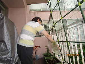 緑のカーテン作成中