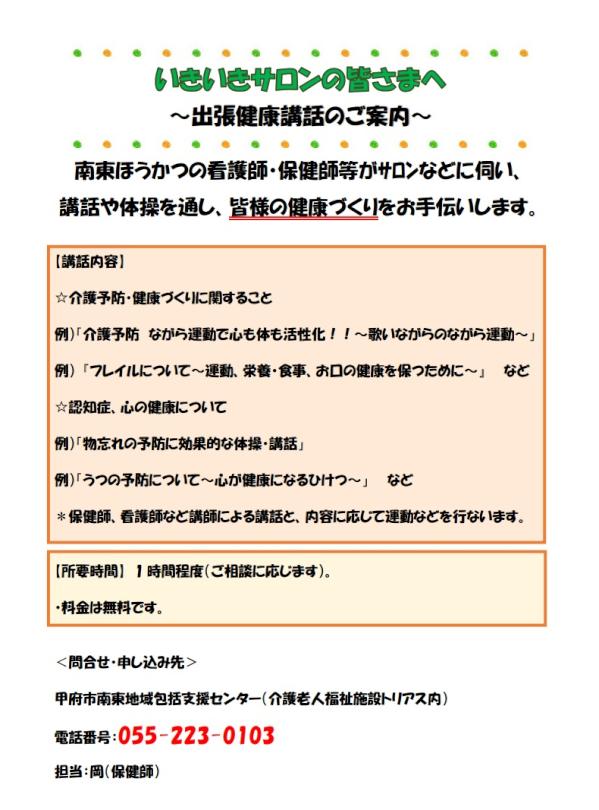 出張健康講話のご案内(いきいきサロン)